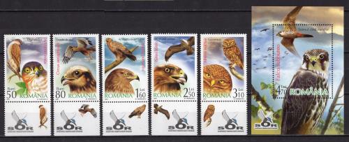 Почтовые марки. Румыния, 2007 г. Фауна. Хищные птицы. Mi.No. 6184 - 6188, Бл. 395.