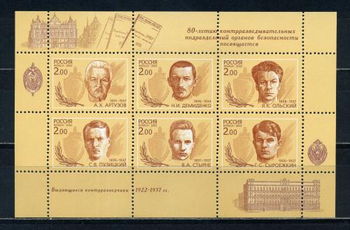 Почтовые марки. Россия. 2002г. Выдающиеся контрразведчики. №749-754.