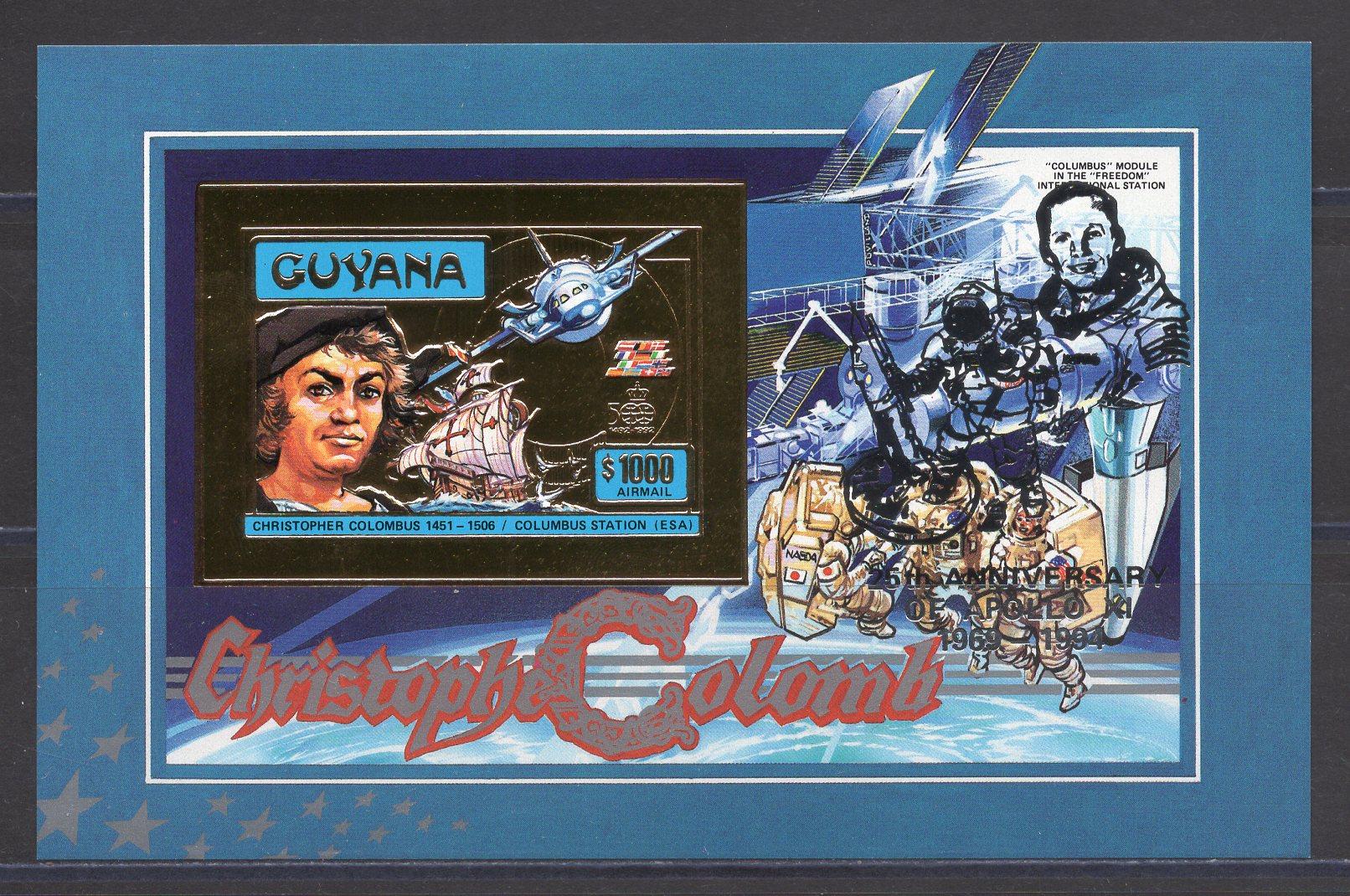 Почтовые марки. Гайана. 1992г. Колумб. Космос. Фольга. Золото. Блок №230В. Беззубц. (Mi: 30.00 Евро)