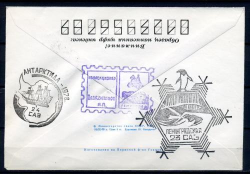 Почтовый конверт с ОМ. СССР 1978г. СГ - Советская Антарктическая экспедиция "Ленинградская". КО.