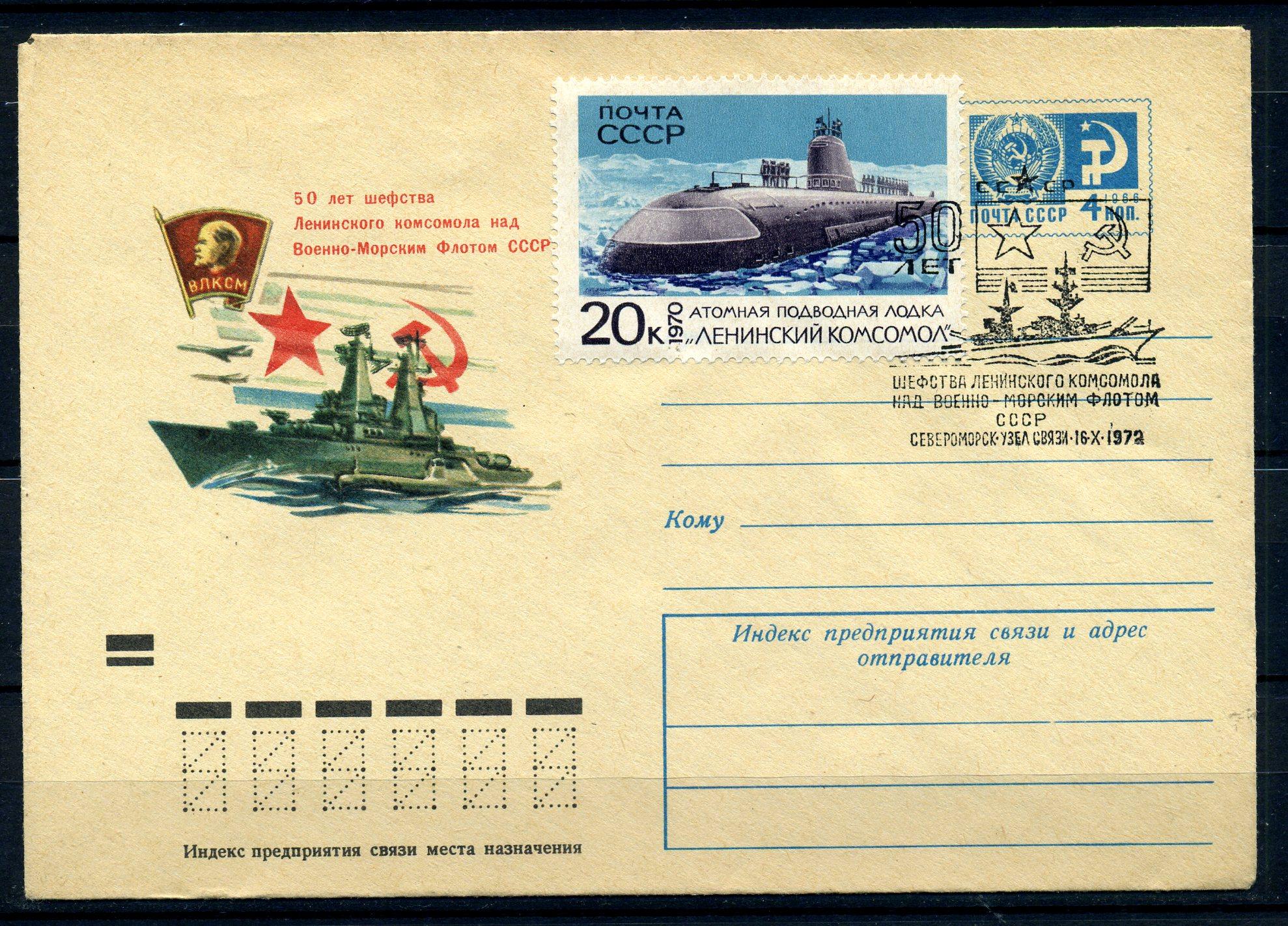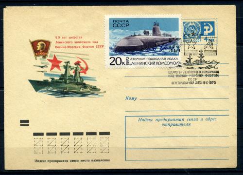 ХМК с маркой и СГ. СССР 1972 г. 50 лет шефства Ленинского комсомола над ВМФ СССР. КО.