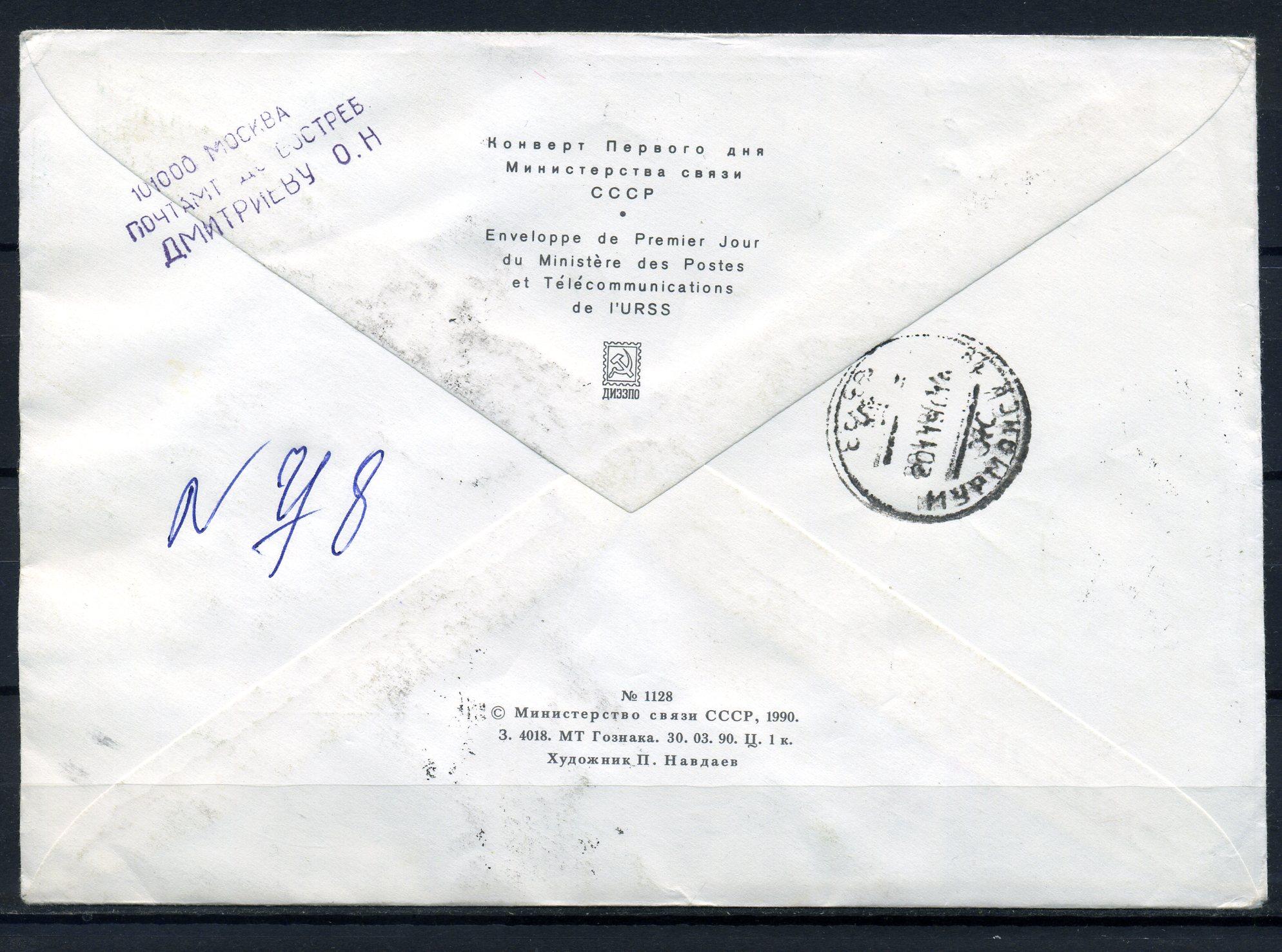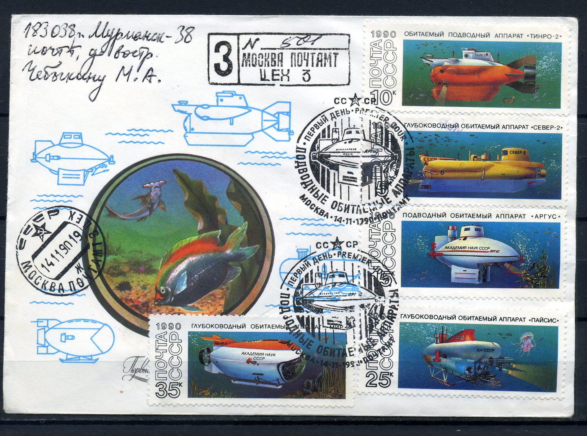 КПД прошедший почту с марками и СГ. СССР 1990 г. Подводные обитаемые аппараты.