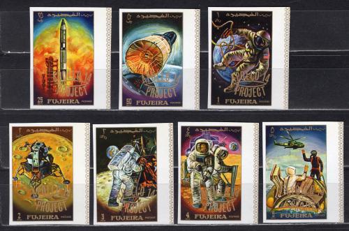 Почтовые марки. Фуджайра. 1970г. Космос. Аполло-14. Надпечатка. №463в-469в. Беззубц.