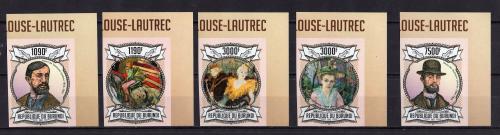 Почтовые марки. Бурунди. 2012г. Великий художник А. Тулуз-Лотрек. №3088В-3092В. Живопись. Беззубц.