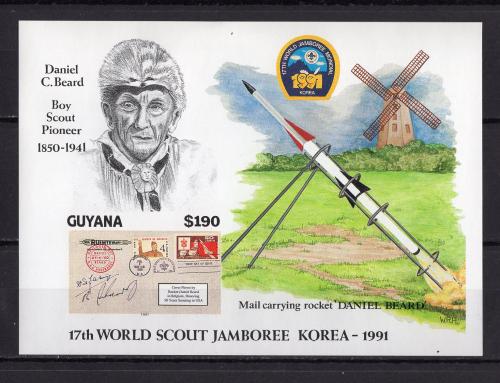Почтовые марки. Гайана, 1991 г. Бл. 1455. Бойскауты. Почтовая ракета.