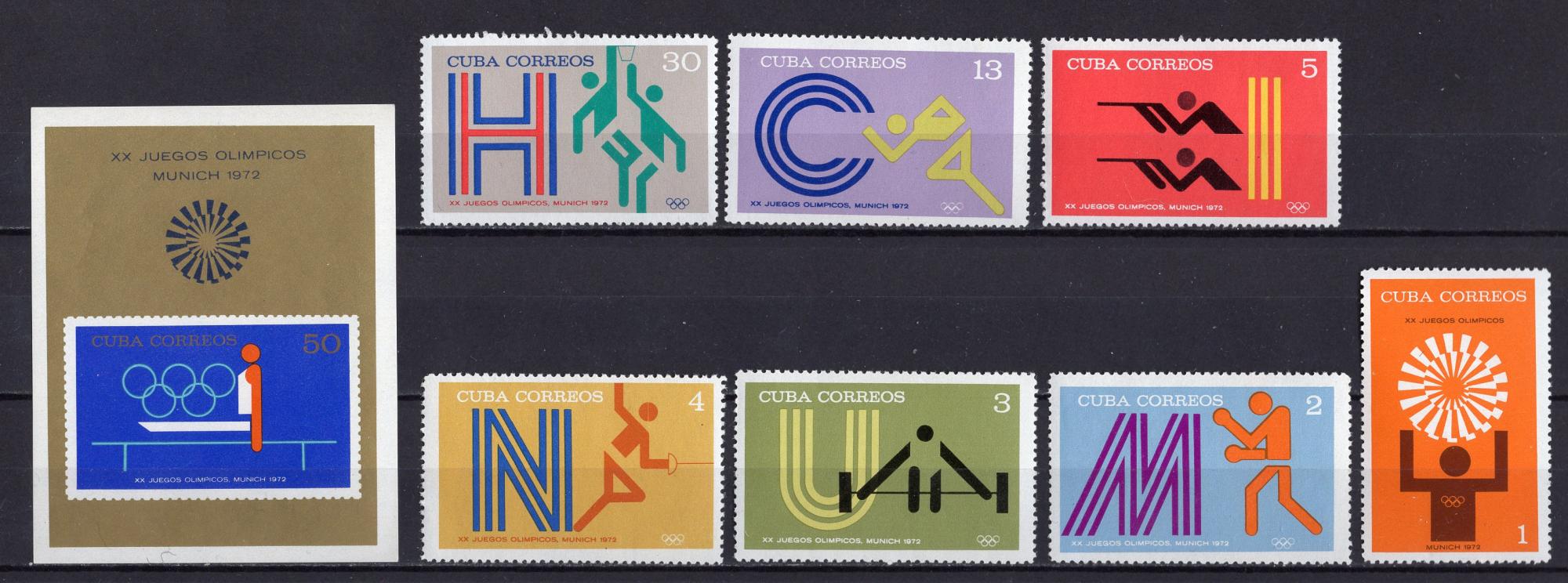 Почтовые марки. Куба, 1972 г. №1790-1796. Бл. 38. Ол. игры.