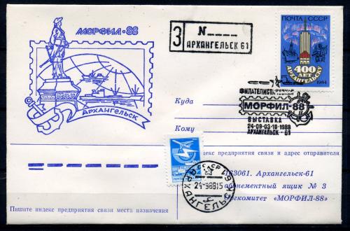 Конверт с маркой и СГ. СССР 1988г. Фил.выставка "Морфил-88". КО.