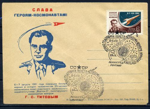 Конверт с маркой и СГ. СССР 1962г. 1-я годовщина полета корабля-спутника "Восток-2". КЗ.