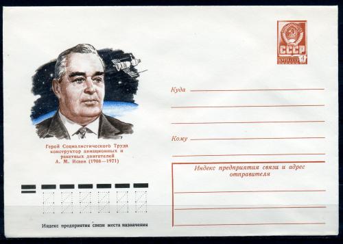 ХМК. СССР 1978 г. Конструктор авиационных и ракетных двигателей А.М. Исаев. КО.