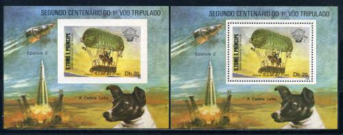 Почтовые марки. Сан-Томе. 1983г. 200-летие авиации. Космос. Собаки. Блок №133А-133В.