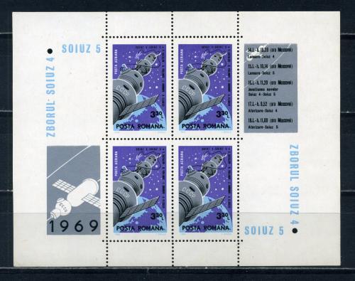 Почтовые марки. Румыния. 1969г. Космос. Союз-4-5. Блок №71.