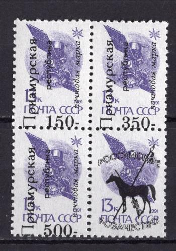 Почтовые марки. Россия. 1994г. Локальный выпуск. Приамурская республика. Надпечатка на марках СССР. КБ.