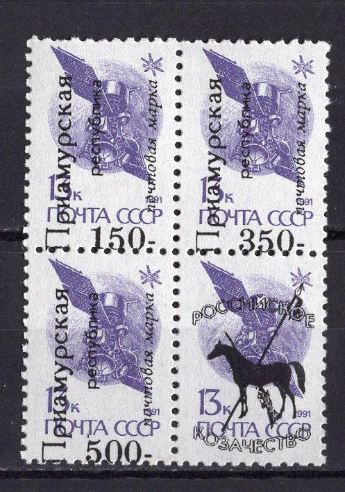 Почтовые марки. Россия. 1994г. Локальный выпуск. Приамурская республика. Надпечатка на марках СССР. КБ.