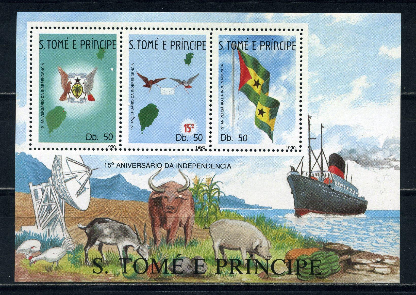 Почтовые марки. Сан-Томе. 1990г. 15-летие независимости. Фауна. Блок №228. (Мi : 16.00 Евро)