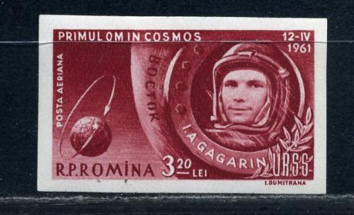Почтовые марки. Румыния. 1961г. Космос. Гагарин. №1964в. Беззубц. (выпущена только как беззубц.)