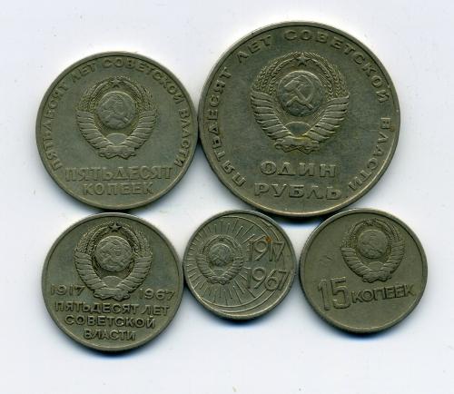 Монеты СССР. Набор 50 лет Советской власти. 5 шт.