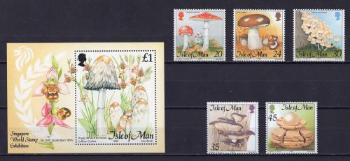 Почтовые марки. Великобритания – остров Мэн, 1995 г. MiNr. 650 - 654, Бл. 24. Грибы.