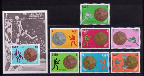 Почтовые марки. Куба. 1973г. Ол.игры. Победители. №1839-1845. Блок №40.