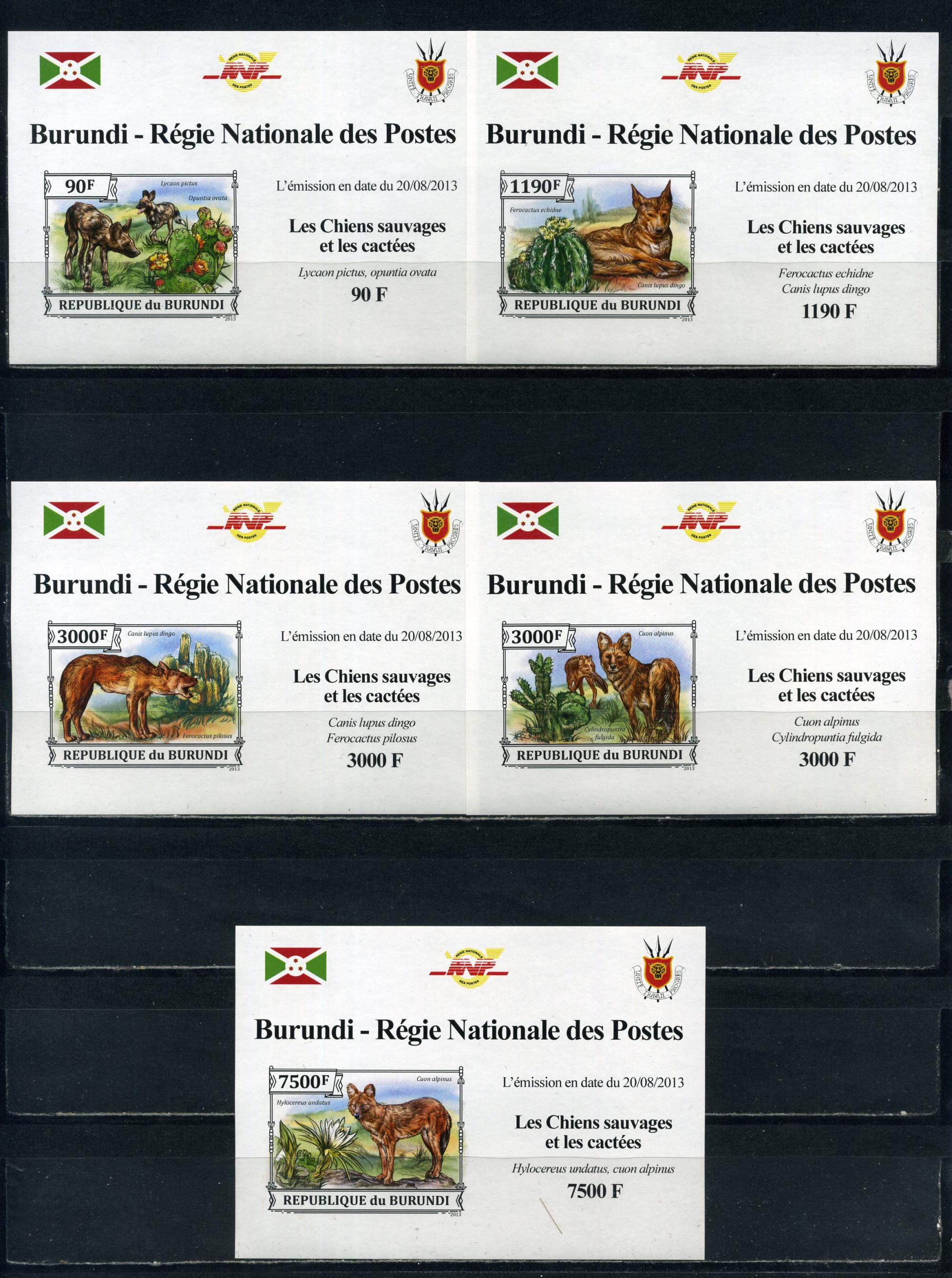 Почтовые марки. Бурунди. 2013г. Дикие собаки и кактусы. Люкс-блоки. №3228-3232. Беззубц.