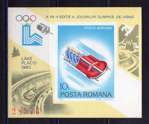 Почтовые марки. Румыния. 1979г. Олимп.игры. Блок №165в. Беззубц.