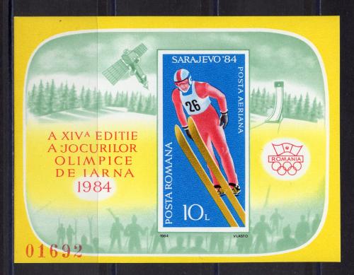 Почтовые марки. Румыния. 1984г. Олимп.игры в Сараево. Блок №199в. Беззубц.