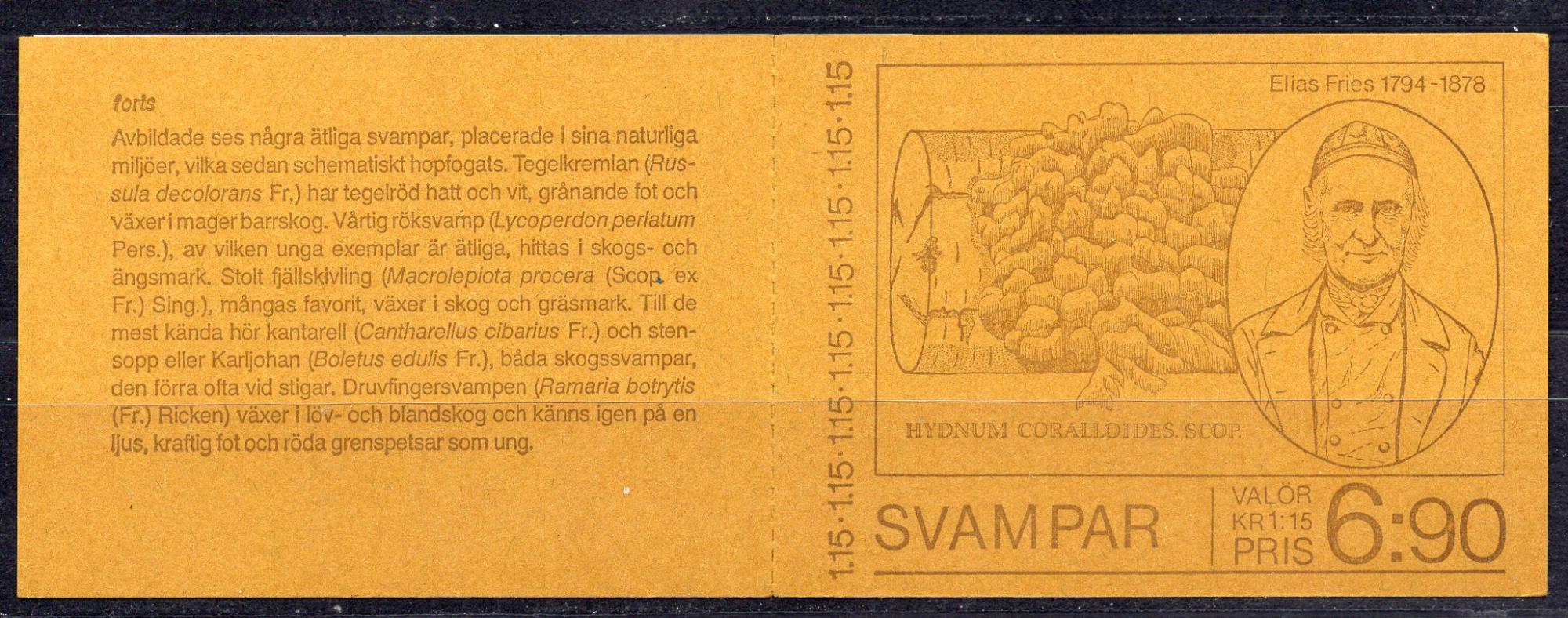 Почтовые марки. Швеция, 1978 г. Грибы. Буклет. MH 69.
