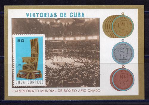 Почтовые марки. Куба. 1975. ЧМ по Боксу. Победа. Кубинский Боксёр. Блок №44.