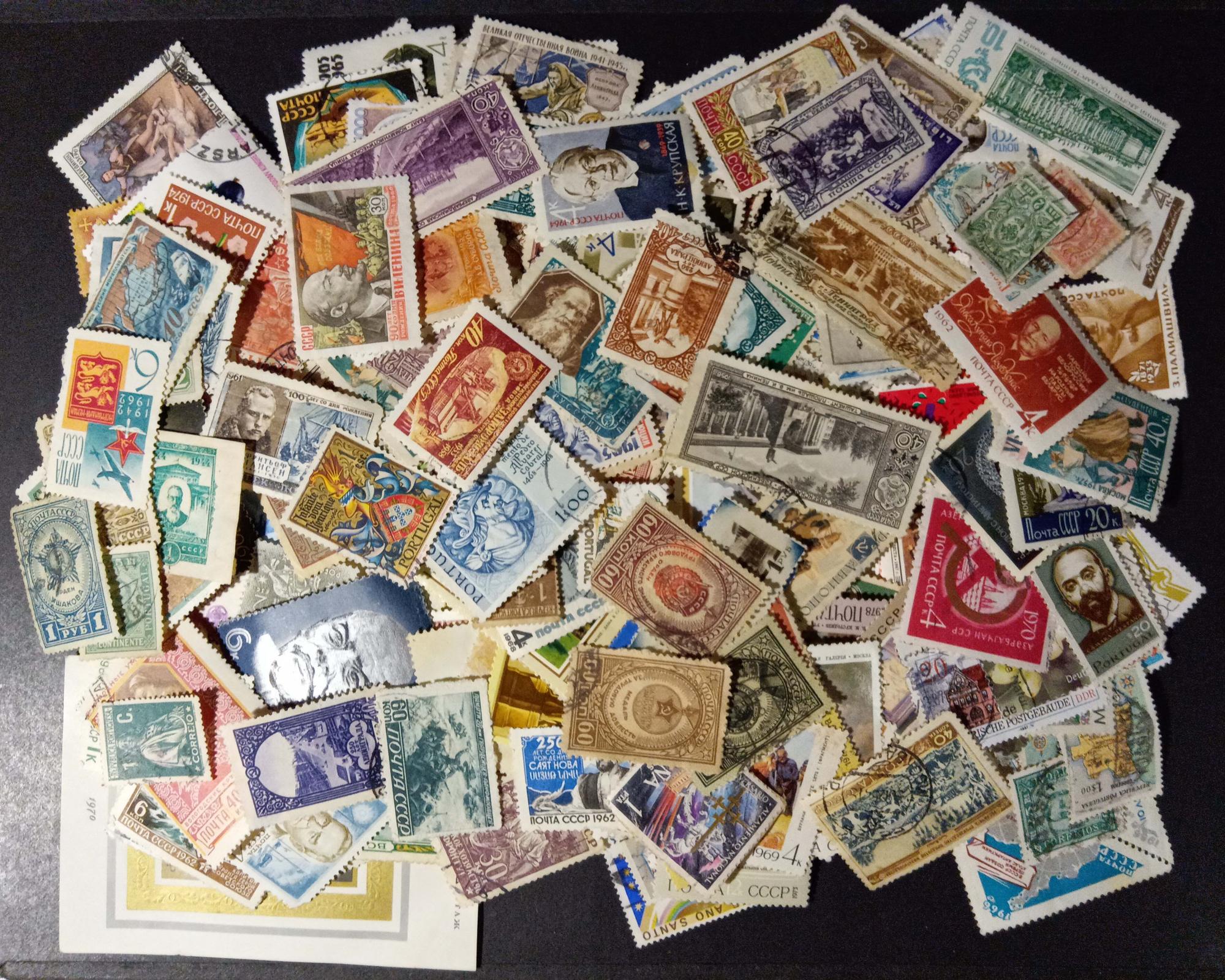 50 грамм почтовых марок разных годов. С различными дефектами.