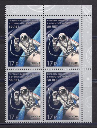 Почтовые марки. Россия 2015 г. Космос. 50-летие выхода. КБ. № 1929
