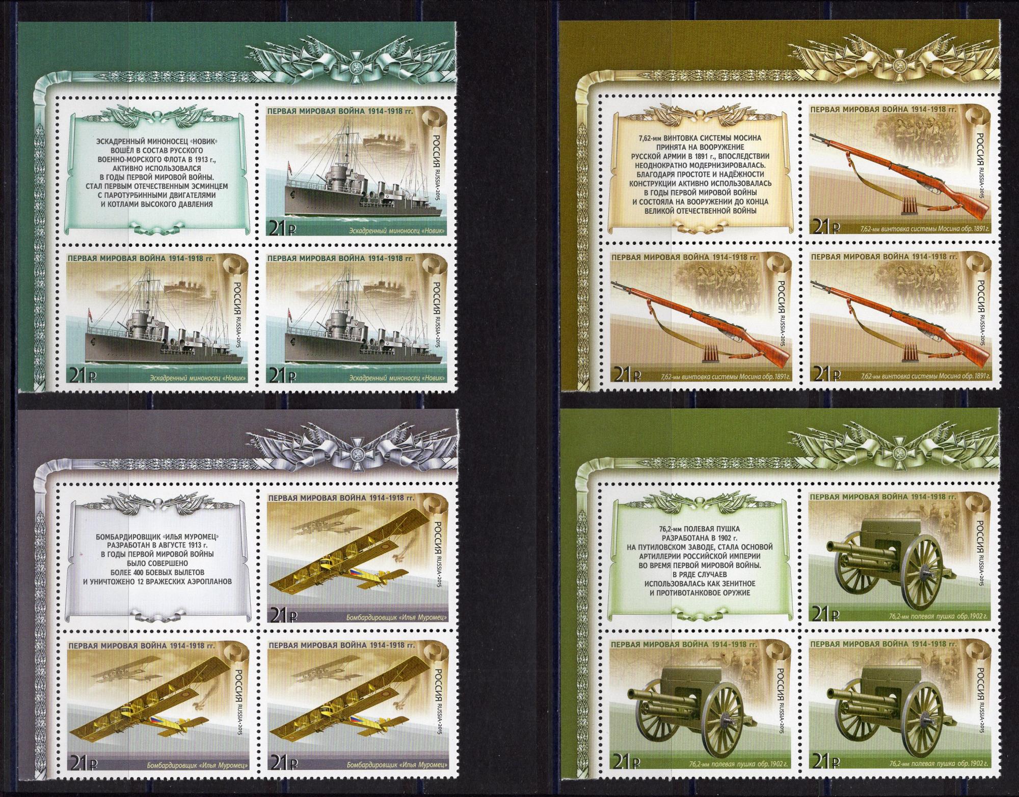 Почтовые марки. Россия 2015 г. Первая мировая. КБ. С купоном. № 1995-1998
