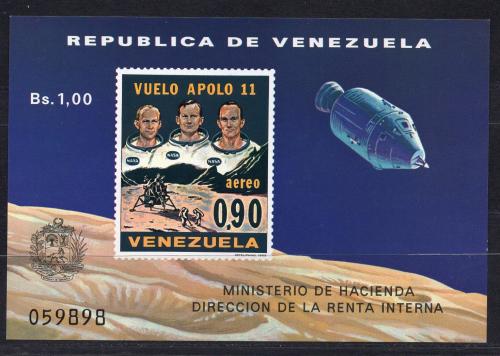 Почтовые марки. Венесуэла. 1969г. Космос. Аполло-11. Блок №18.