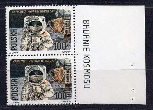 Почтовые марки. Польша. 1989г. Космос. Первый человек на Луне. №3206. Сцепка с полем.