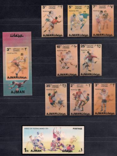 Почтовые марки. Аджман, 1972 г. MiNr. 1461 - 1468, Бл. 378-379. Футбол. Комплект. (Mi 22.0 €) Стерео.
