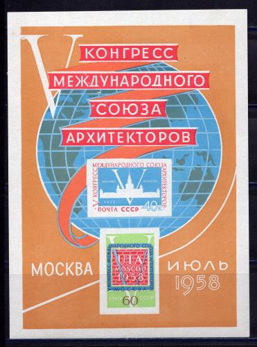 Почтовые марки. СССР. 1958г. Конгресс Архитекторов. Блок №2175. (См.сост.)