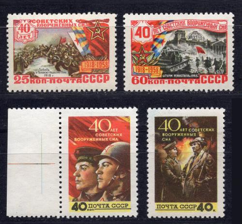 Почтовые марки. СССР, 1958 г. №2121-2123, 2125. 40 лет советских вооруженных сил.