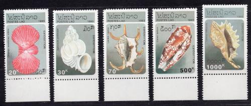 Почтовые марки. Лаос, 1993 г. №1358-1362. Ракушки.