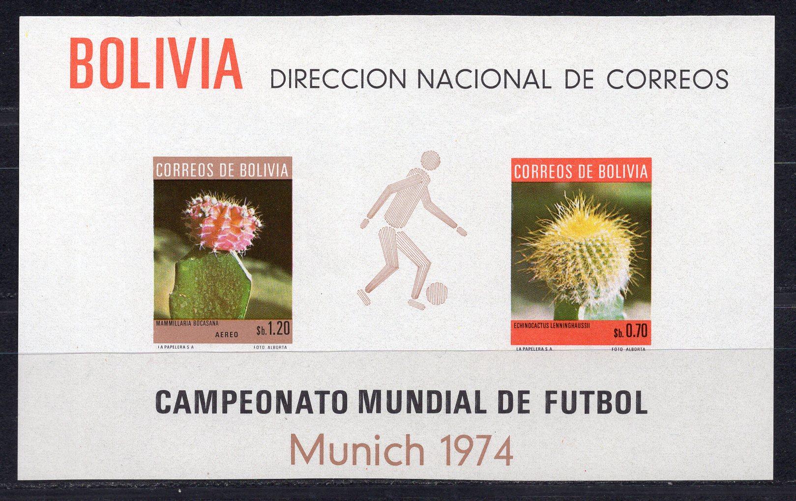 Почтовые марки. Боливия, 1973 г. Футбол. Бл. 36. Безз. Mi 42,00 €