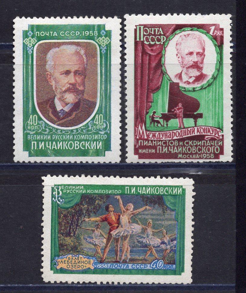 Почтовые марки. СССР. 1958г. П.И.Чайковский. №2129-2131. (См.сост.)