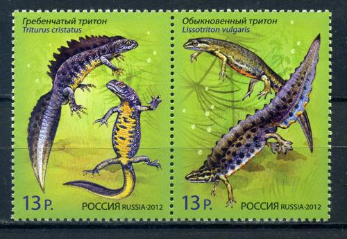 Почтовые марки. Россия. 2012 г. № 1599-1600. Фауна. Тритоны.