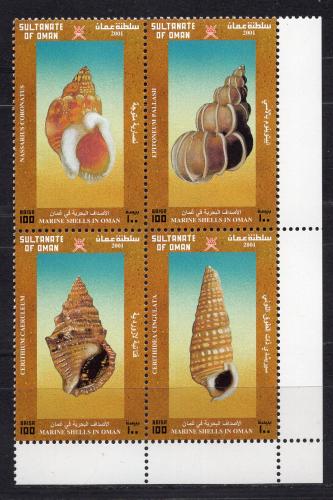 Почтовые марки. Оман, 2001 г. №511-514. Ракушки.