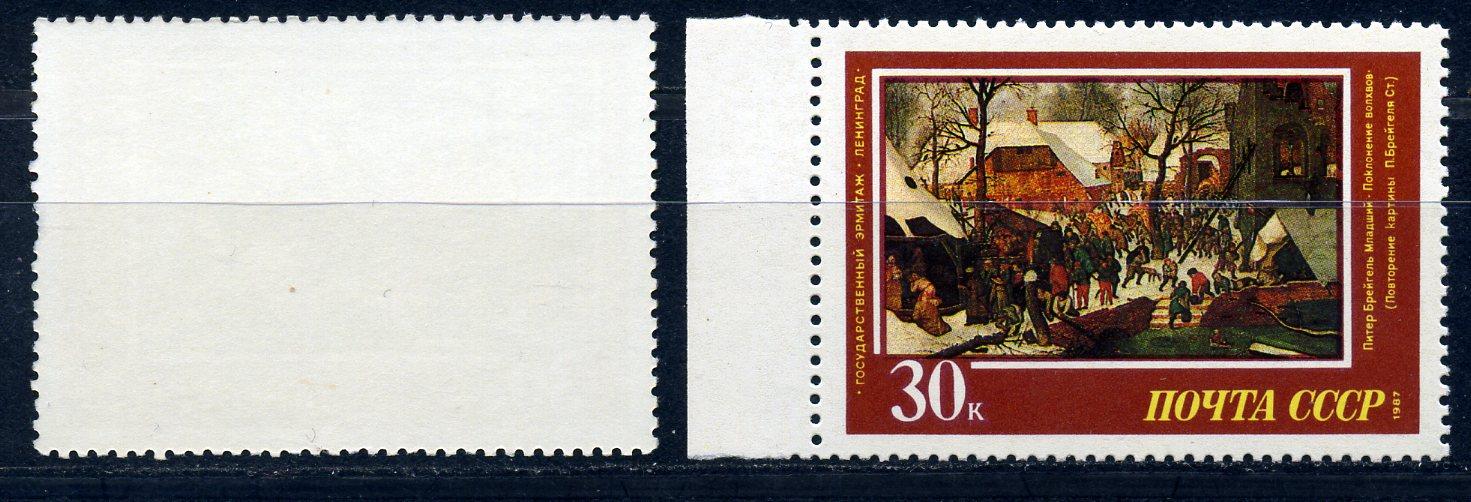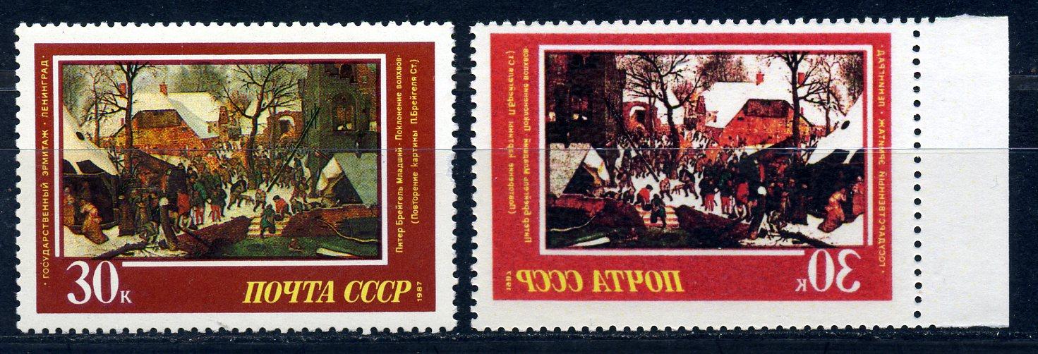 Почтовые марки. СССР 1987 г. Живопись. Брейгель. № 5837. АБКЛЯЧ + обычная.