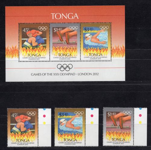 Почтовые марки. Тонга, 2012 г. №1789-1791. Бл. 55. Ол. Игры в Лондоне. (Mi 17.0 e)