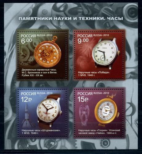 Почтовые марки. Россия 2010 г. Часы. Бл. 105