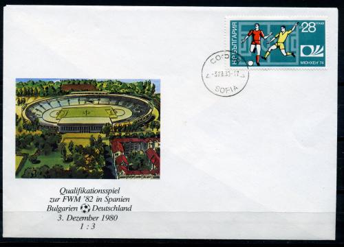 Конверт с маркой и СГ. Болгария 1980 г. Футбол. Отборочный матч ЧМ-82. Болгария-Германия. КО.