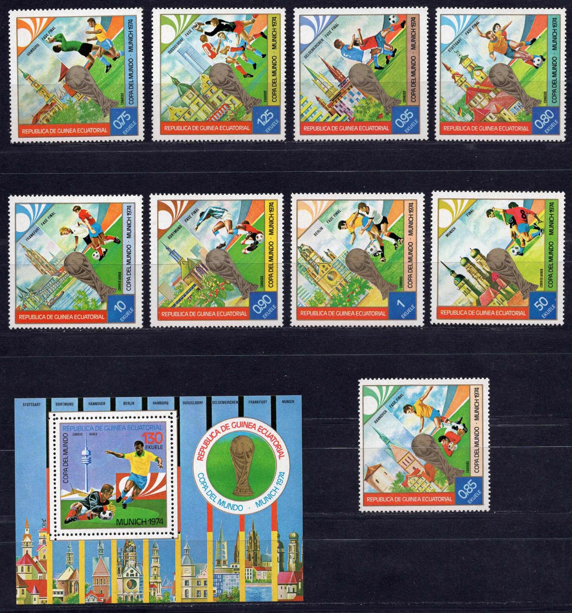 Почтовые марки. Экв. Гвинея, 1974 г. Футбол. 337 -345, Бл. 95. Комплект.