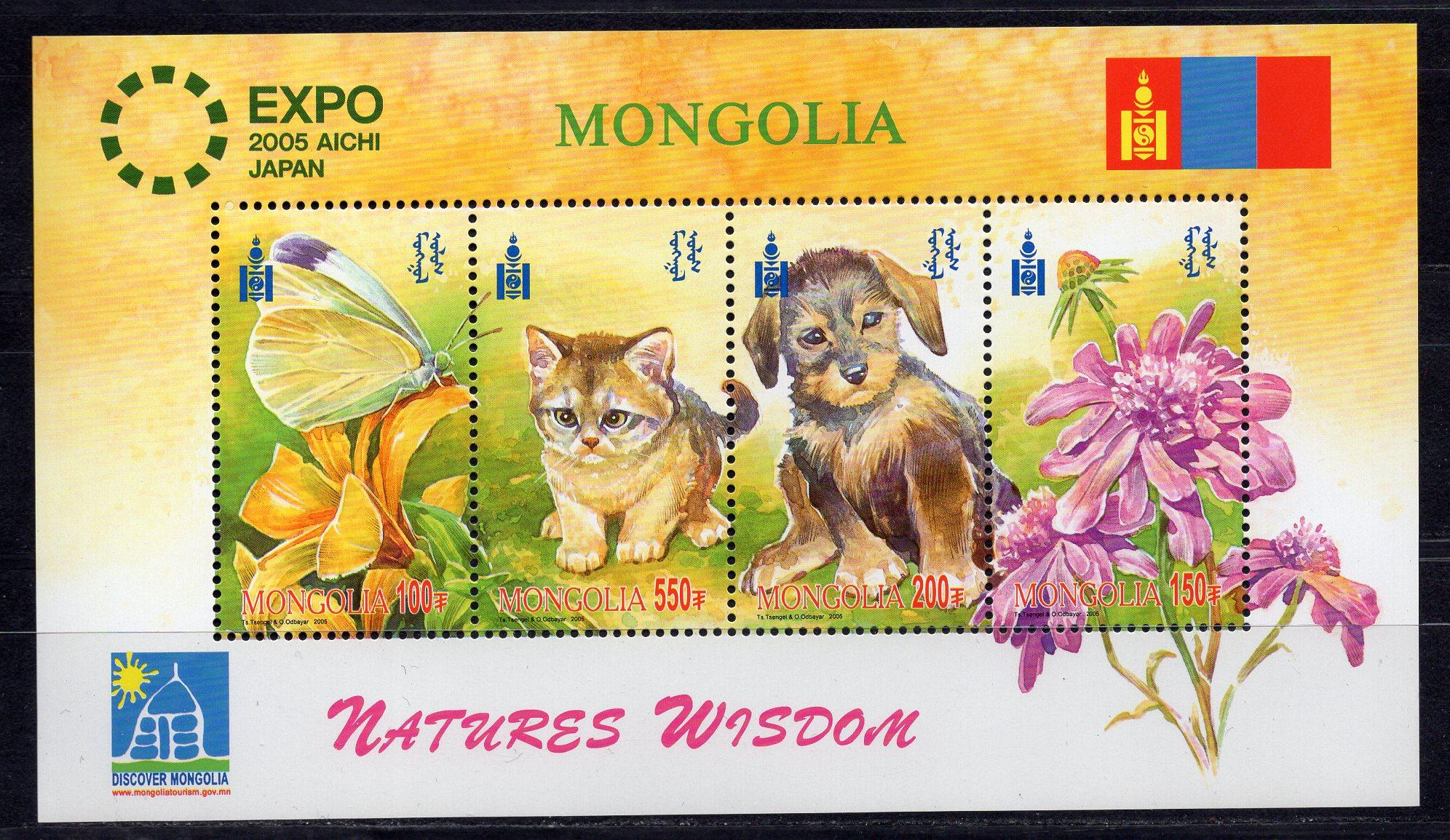 Почтовые марки. Монголия, 2005 г. Фауна. Флора. Бл. 349. Всемирная выставка Expo 2005, Япония.