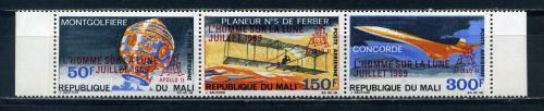 Почтовые марки. Мали. 1969г. Космос. Аполло-11. Надпечатка. №201-203. Сцепка.