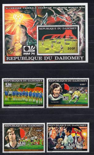 Почтовые марки. Дагомея, 1974 г. Футбол. MiNr. 605 - 608, Бл. 49 (Mi 15.0 e)