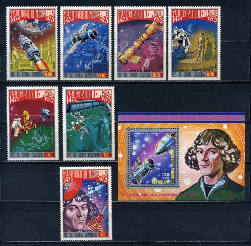 Почтовые марки. Экваториальная Гвинея. 1974г. Космос. Коперник. №329-335. Блок №94.