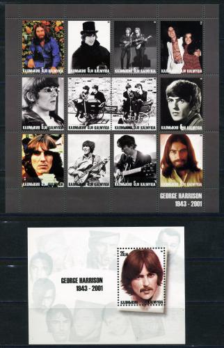 Почтовые марки. Калмыкия 2001 г. Джордж Харрисон. (некаталог.) МЛ+БЛ